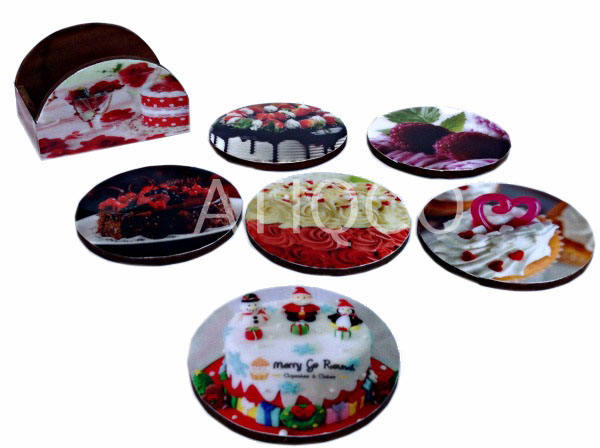 ชุดถาดรองแก้วไม้ MDF สไตล์มินิมอลแผ่นรองแก้วลายไอศกรีมมีสไตล์