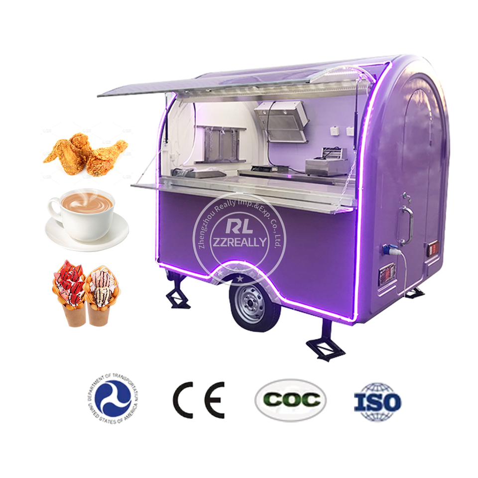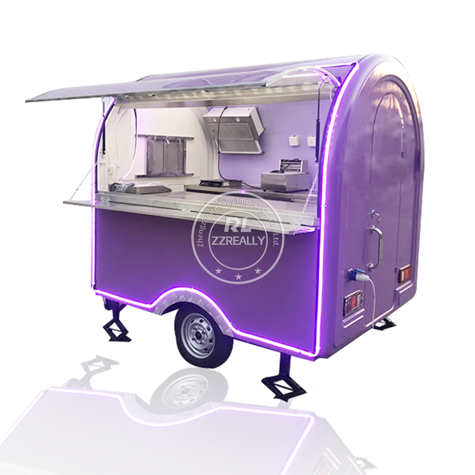 เครื่องพ่วงอาหารเคลื่อนที่สำหรับขายปลีกขนมขบเคี้ยวผลิตภัณฑ์นมขนมฮอทด็อกทำจากบาร์บีคิวทำจากข้าวโพด
