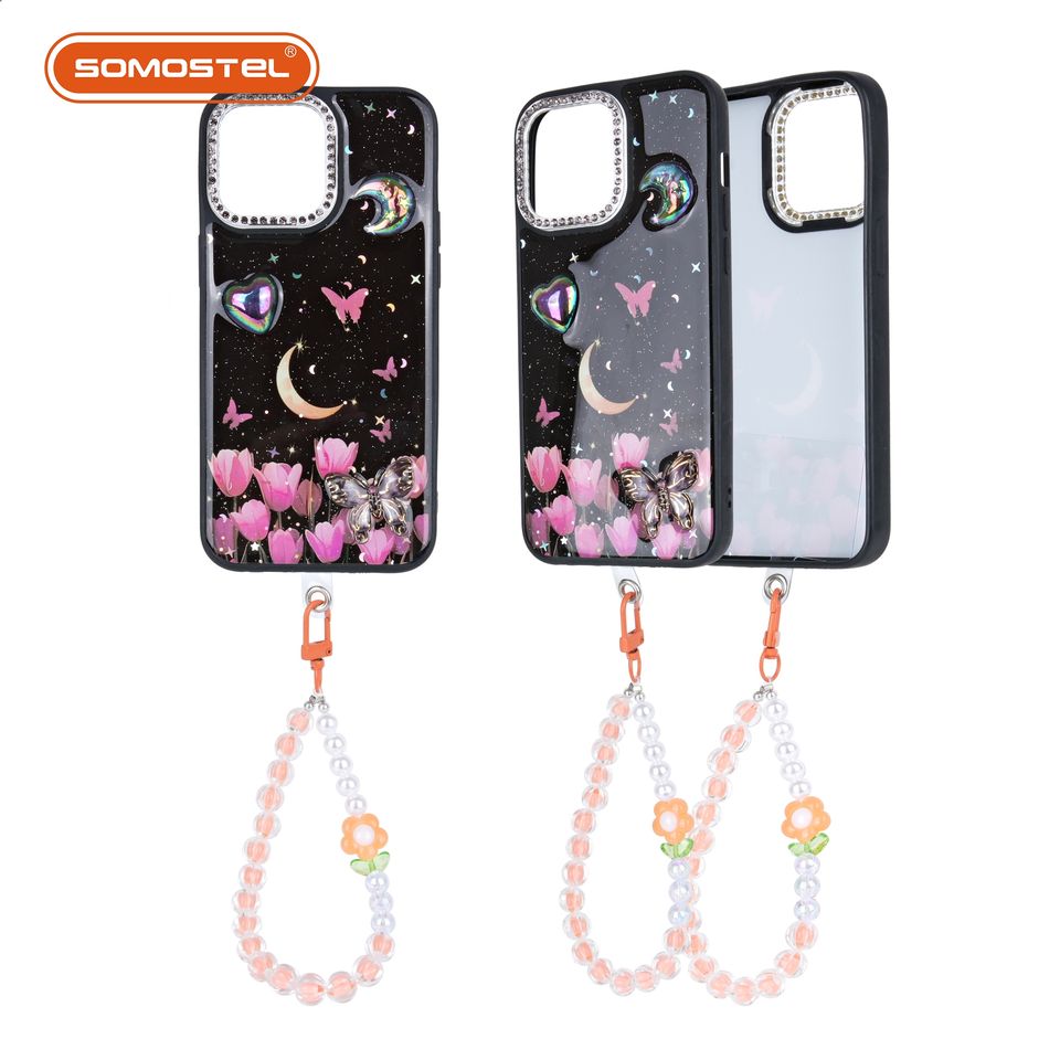 เคสโทรศัพท์ลายดอกไม้ เคลือบเรซิ่น พร้อมสายคล้อง