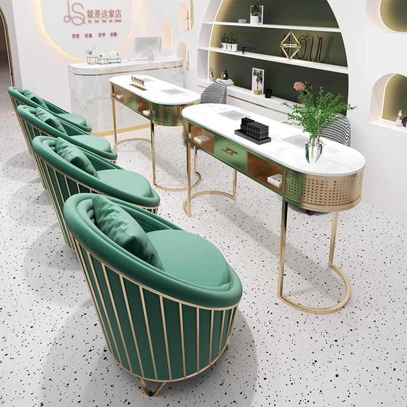 ชื่อผลิตภัณฑ์:ชุดโต๊ะและเก้าอี้ทำเล็บคู่แบบเดี่ยวสำหรับร้านเสริมสวยสีชมพูที่ทันสมัย