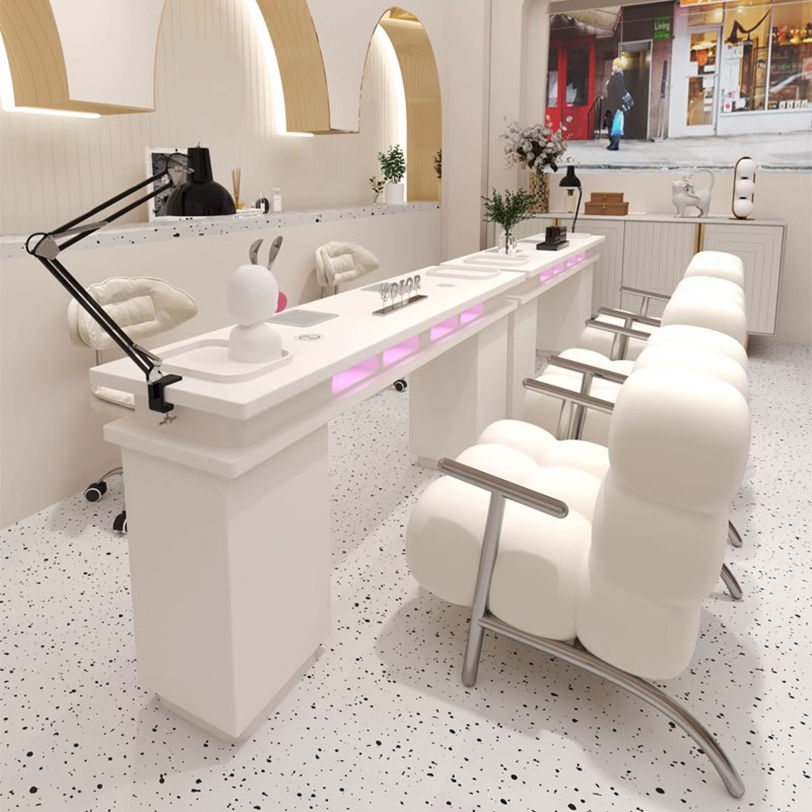 โต๊ะทำเล็บโต๊ะไม้พร้อมโคมไฟทำเล็บโต๊ะทำเล็บคู่แบบเดี่ยวเฟอร์นิเจอร์ร้านค้าเพื่อความงามแบบทันสมัย