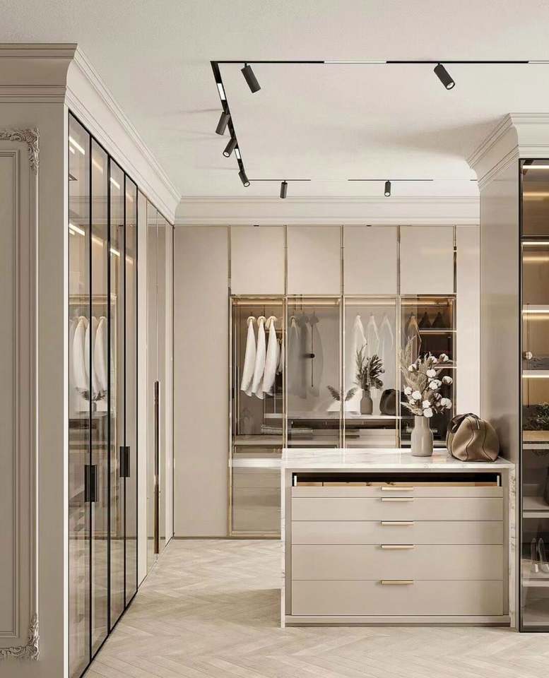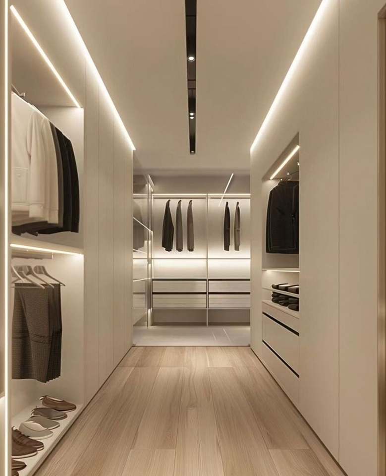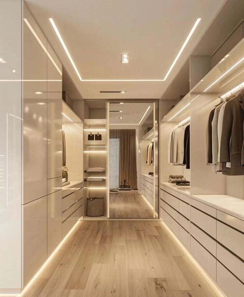 ห้องนอนสมัยใหม่ห้องเก็บเสื้อคลุมแบบเรียบง่ายห้องนอนใหญ่แบบประตูเรียบตู้เสื้อผ้าไม้เก็บของหรูหรา