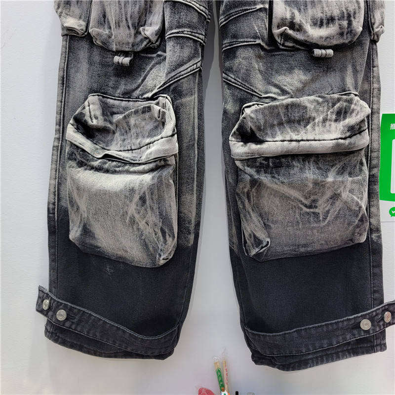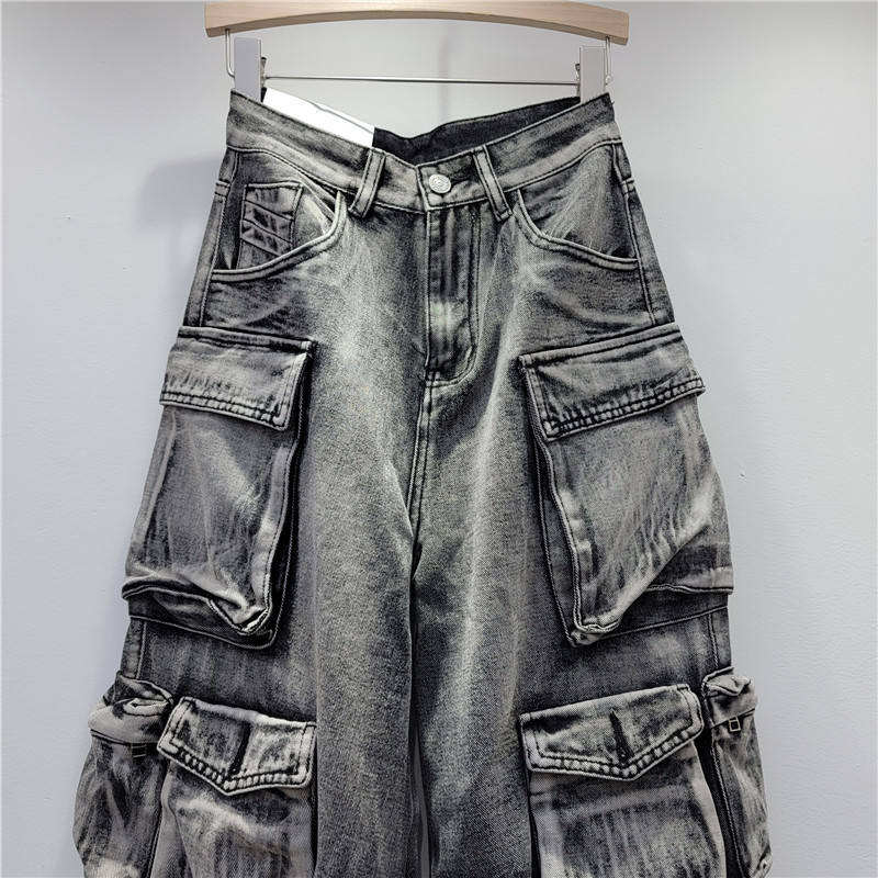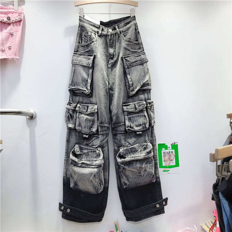 กางเกงยีนส์ทรงบอยเฟรนด์หลายกระเป๋า ขายดี กางเกงขากว้างทรงหลวม กางเกงคาร์โก้เอวสูงสำหรับผู้หญิง