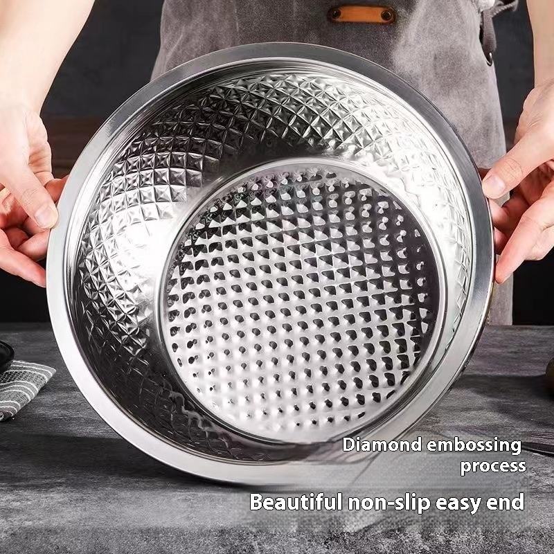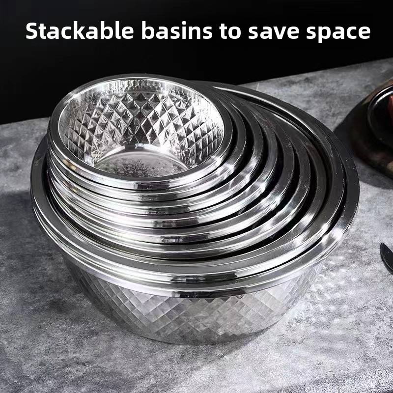 ชามผสมสลัดทำจากสเตนเลสพร้อมฝาปิดชามผสมผลไม้ในห้องครัวมีหลายขนาด