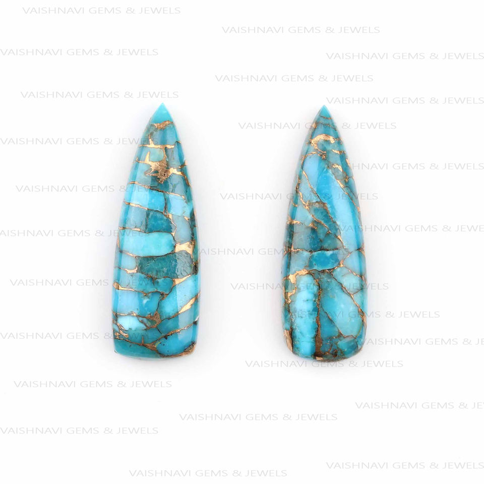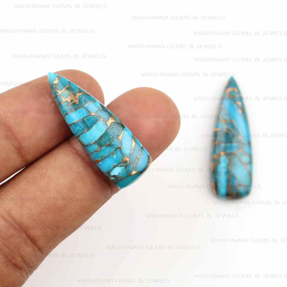 เครื่องประดับทองแดงสีฟ้าธรรมชาติเทอร์ควอยซ์ยาว10X30มม. ด้านหลังแบนขัดเงาสูงอัญมณีทรงหลวม