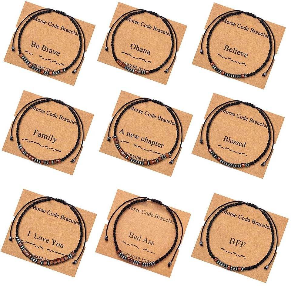 สร้อยข้อมือหินธรรมชาติถักแบบปรับได้ สไตล์มอร์สโค้ด ตัวอักษรและตัวเลข สำหรับคู่รัก 男女兼用 ลดราคาพิเศษ