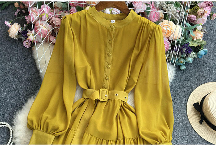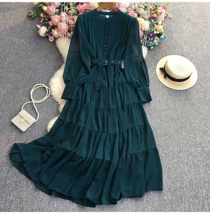 เดรสยาวสีพื้นแขนยาวสไตล์หวานๆ ผ้าทอเนื้อนุ่มใส่สบายสำหรับผู้หญิง ลดราคาพิเศษ คอลเลคชั่นใหม่ 2025