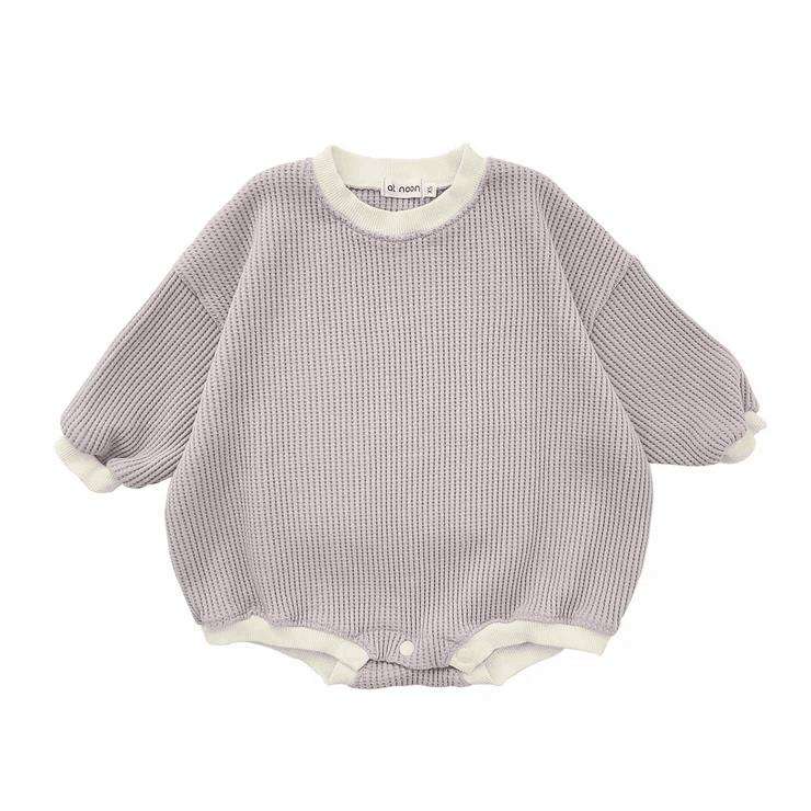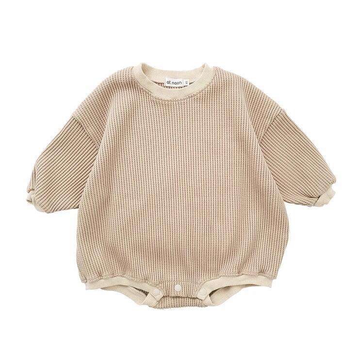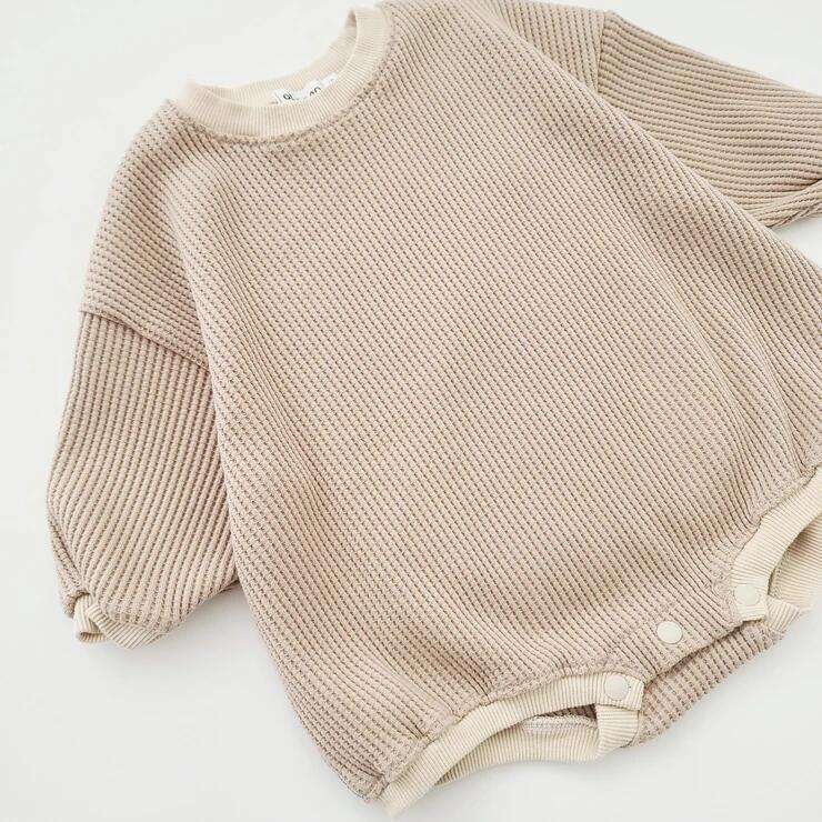 ชุดรอมเปอร์เด็กทารกแบบวาฟเฟิลติดกระดุม ลดราคาพิเศษ สำหรับฤดูใบไม้ร่วง ชุดจั๊มสูทลำลองแขนยาวสีพื้น