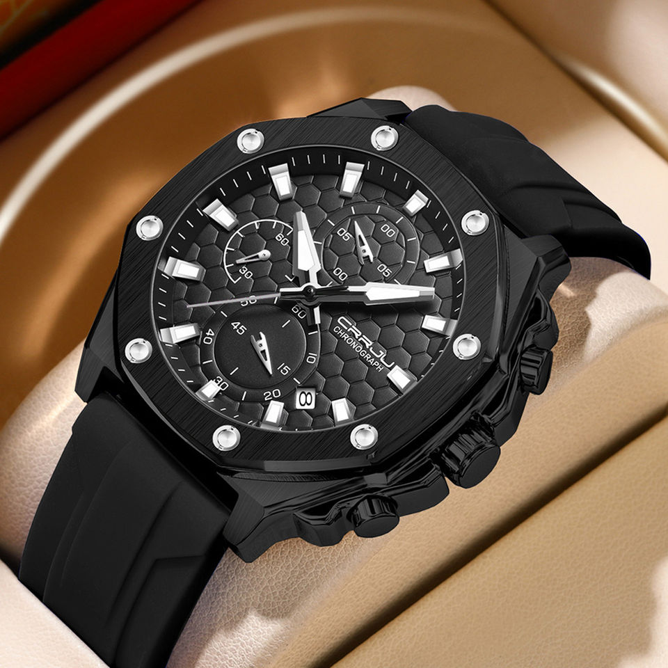 ลักษณะ:โครโนกราฟ, วัน / วัน, กันน้ำ, กันน้ำ, เรืองแสง, สัปดาห์แสดง, มือส่องสว่าง, หยุดนาฬิกา
