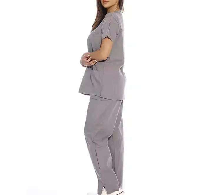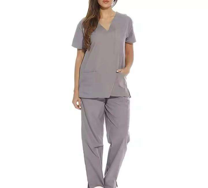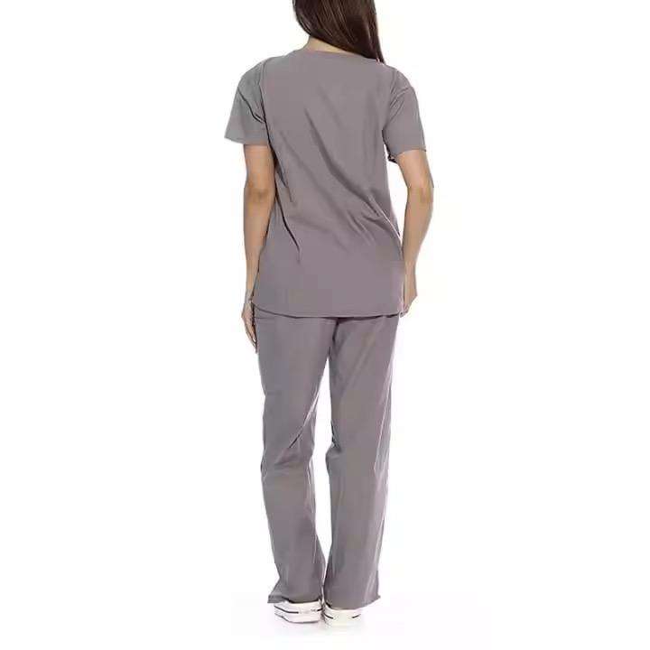 ชุดยูนิฟอร์มพยาบาลแบบใหม่ ขายดี ดีไซน์ใหม่ รับสกรีนโลโก้ 3 กระเป๋า เสื้อพนักงานโรงพยาบาล ผ้าฝ้ายพิมพ์ลายสีดำ
