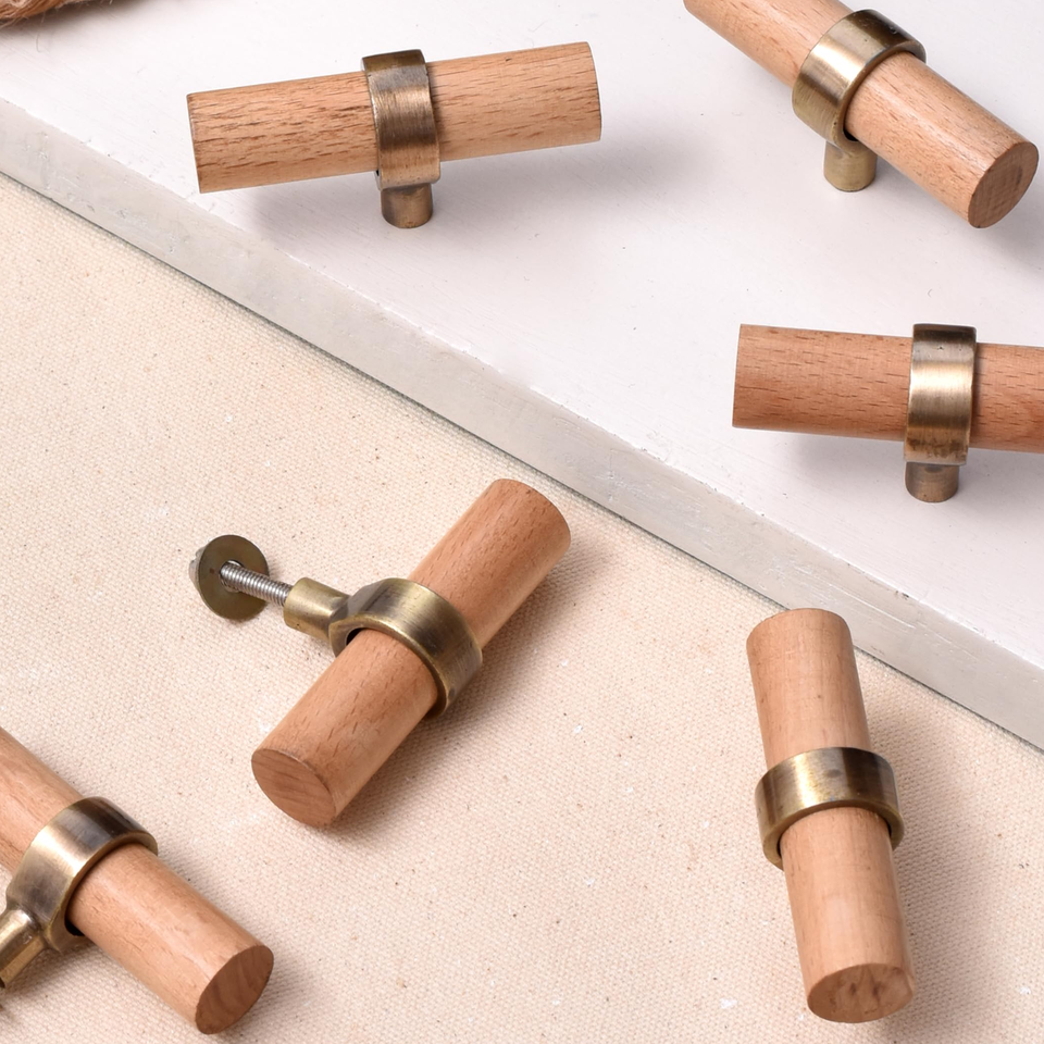 ลดกระหน่ำ! Dressers Mall ลูกบิดไม้แบบดึงอุปกรณ์ทองเหลืองสำหรับตู้ลิ้นชักประตูตู้เสื้อผ้าดีไซน์ใหม่