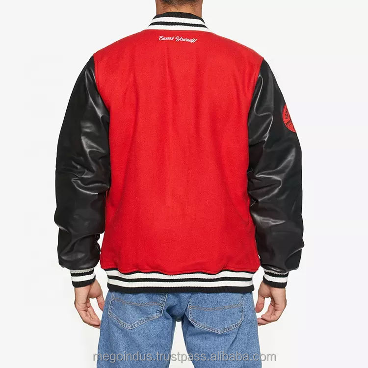 แจ็กเก็ตเบสบอลหนังสไตล์ Letterman,เสื้อแจ็กเก็ตบอมเบอร์หรูหราฤดูหนาวใส่โลโก้ได้ตามต้องการ