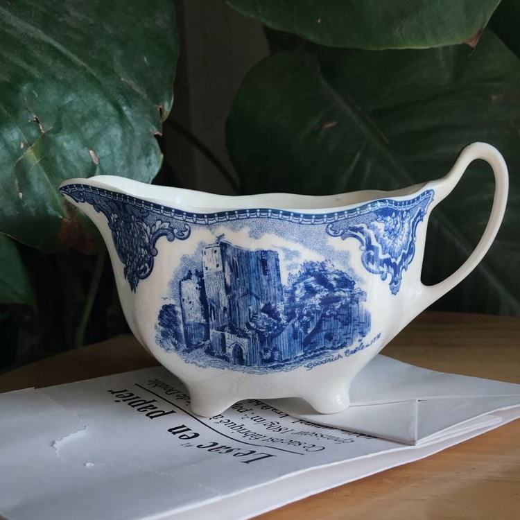 ชุดจานลายปราสาทบริเทนเก่าชุดอาหารค่ำเซรามิกสีฟ้าคลาสสิก