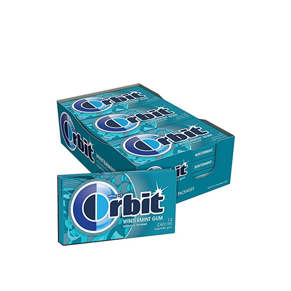 หมากฝรั่งออร์บิทท์ปราศจากน้ำตาลสำหรับเคี้ยวหมากฝรั่งบรรจุในกล่องบรรจุบรรจุนมรส