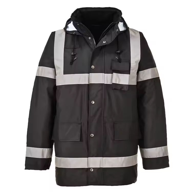 เสื้อแจ็คเก็ตนิรภัยสะท้อนแสงสีดำกันน้ำสำหรับใช้งานกลางแจ้ง ผลิตจากโพลีเอสเตอร์ มาตรฐาน ANSI Class 1 ลดราคาพิเศษ | เสื้อคลุมทำงานแบบมองเห็นได้ชัดเจน ป้องกันลม