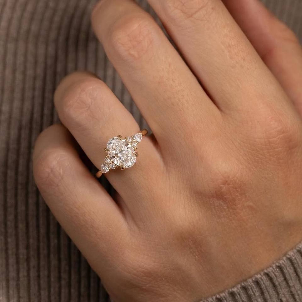 แหวนเพชรทรงรีหรูหราประดับเพชรเม็ดเล็กด้านข้าง ทอง 10K 14K 18K สีเหลือง ขาว ชมพู สำหรับหมั้น ได้รับการรับรองจาก IGI เหมาะสำหรับเป็นของขวัญ