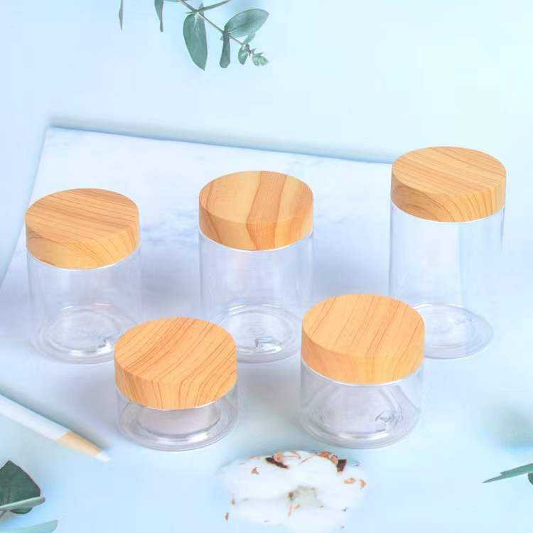 ขวดพลาสติก PET ลดราคาพิเศษ, ขวดใสแบบดึงฝา, ฝาพลาสติกลายไม้