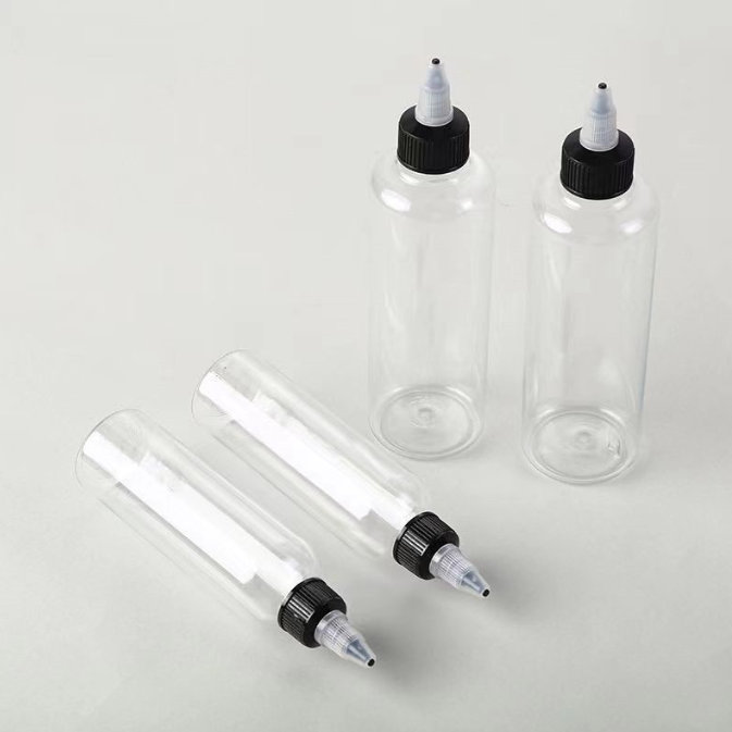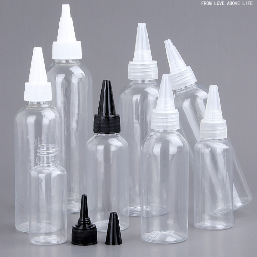 ขวดหยดน้ำพลาสติก PET 30มล. 60มล. 100มล. ขวดน้ำมันหอมระเหยพร้อมฝาบิดสีดำสำหรับกาว