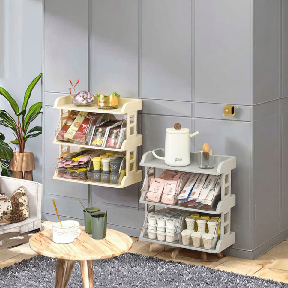 กล่องเก็บของอเนกประสงค์ตั้งโต๊ะทำจากพลาสติกแบบแคปซูลชั้นวางเครื่องเทศติดผนัง