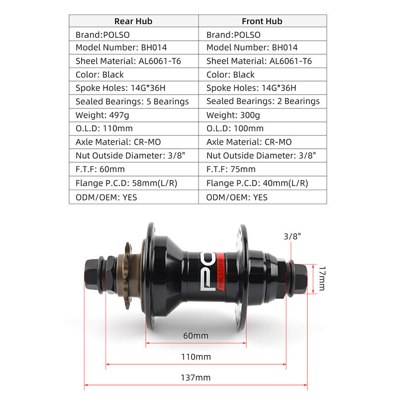 Hot Sale Polso Bh014 9t Female Axle Nut Bmx Hub 36h Right Driver