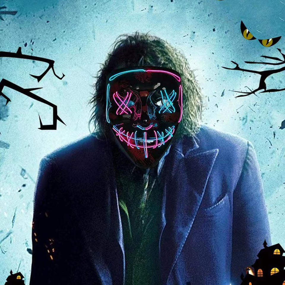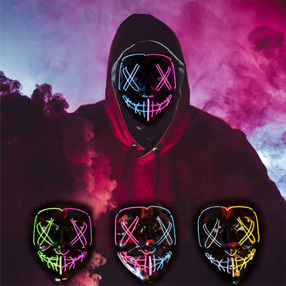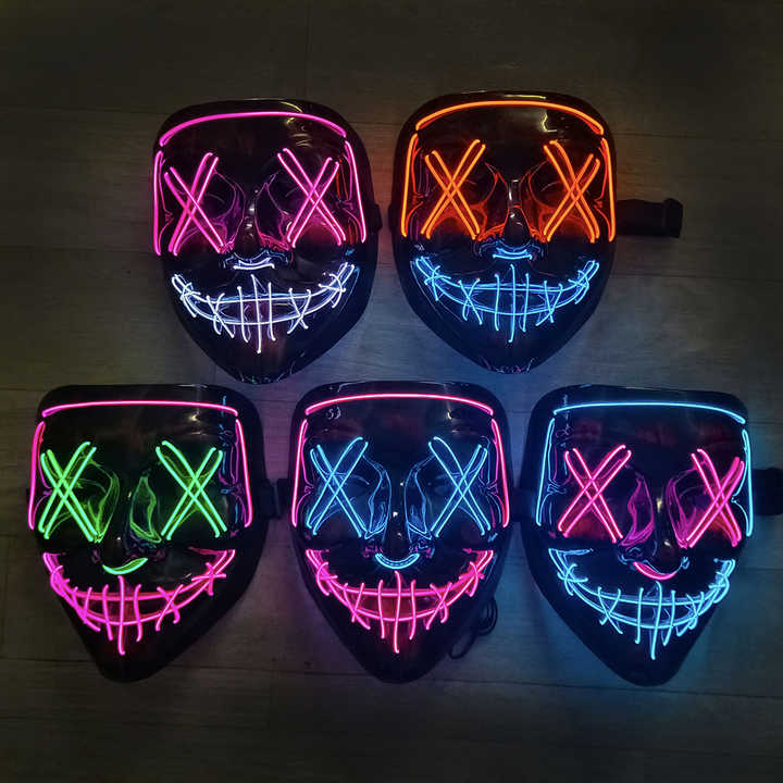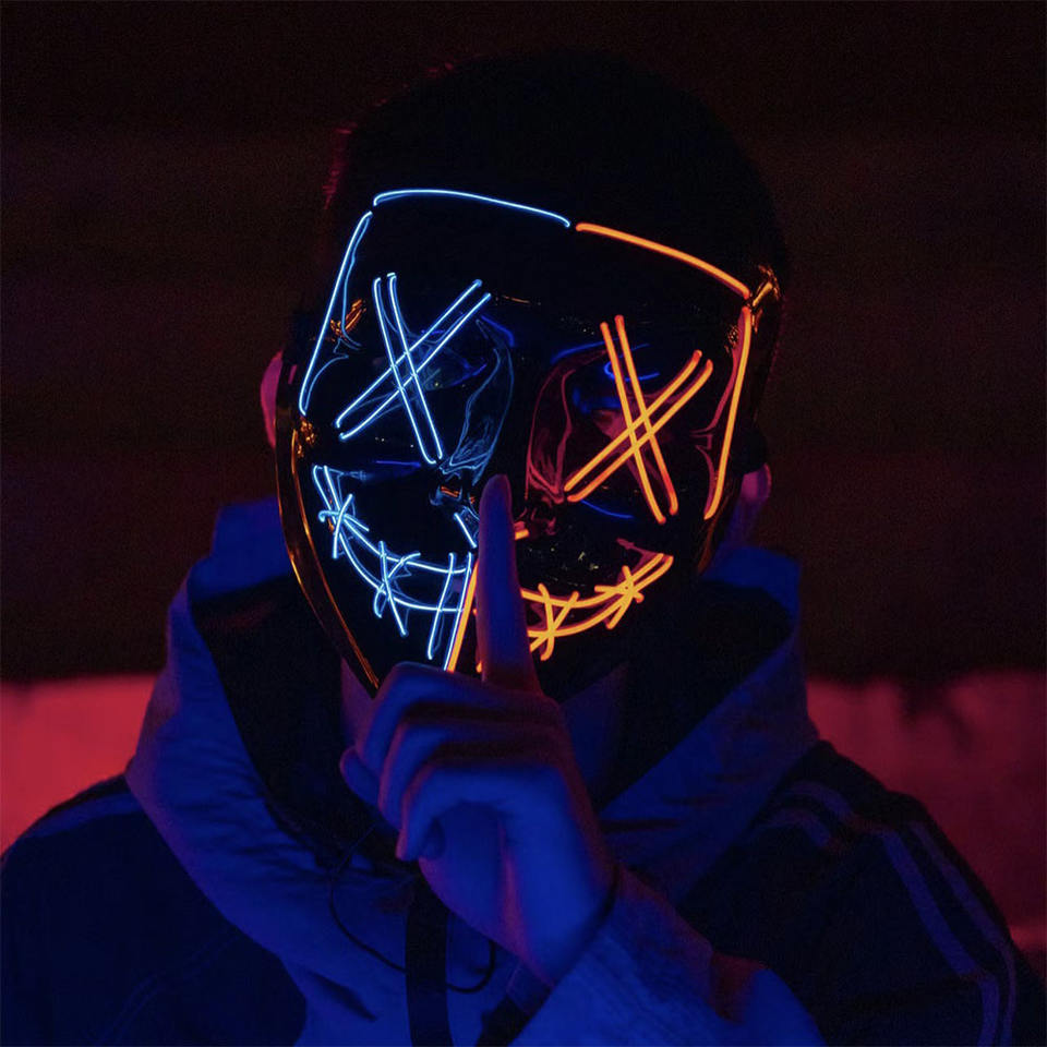 หน้ากากผี LED เรืองแสงอุปกรณ์เสริมฮาโลวีนหน้ากากเรืองแสงอุปกรณ์เสริมฮาโลวีน
