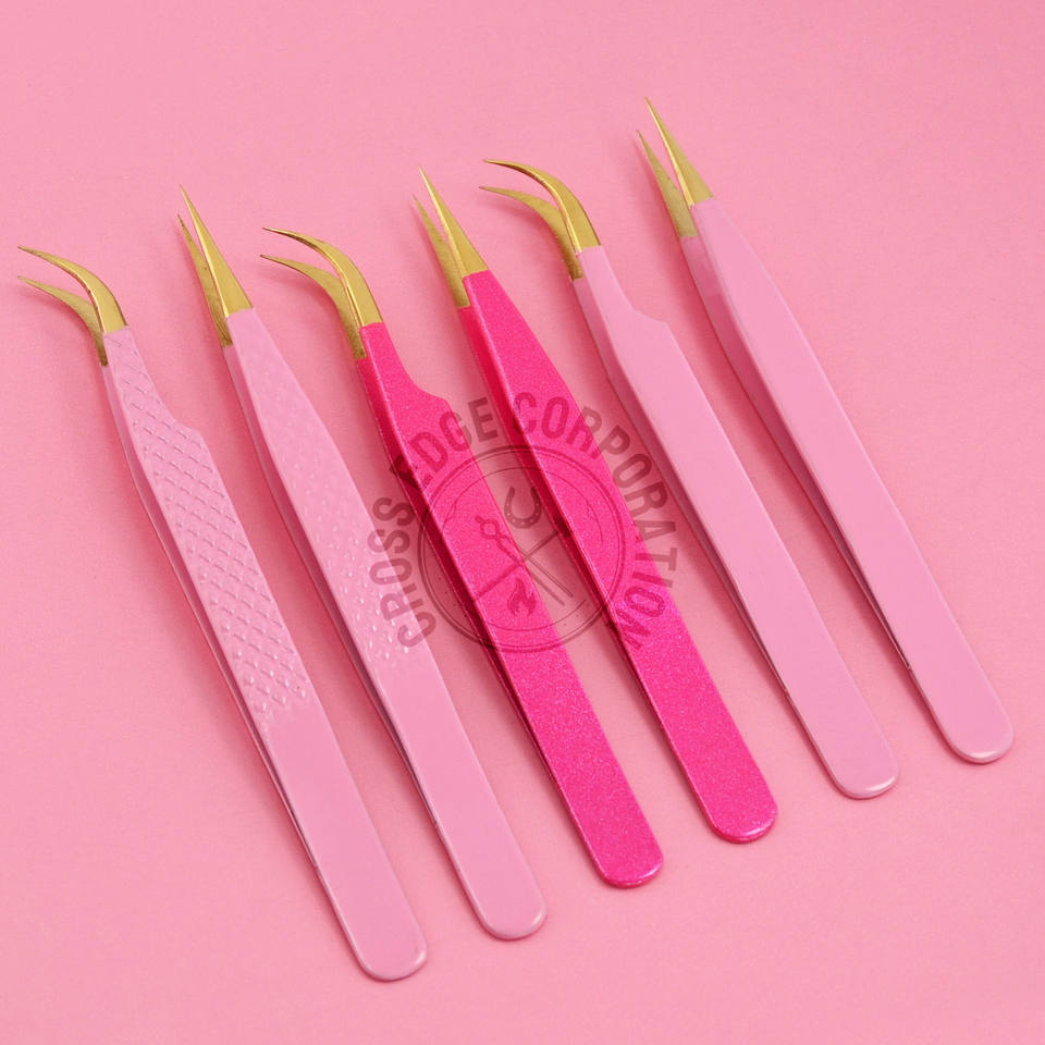 ชื่อผลิตภัณฑ์:แหนบปลายต่อขนตาไฟเบอร์สีชมพูแวววาวขายดี