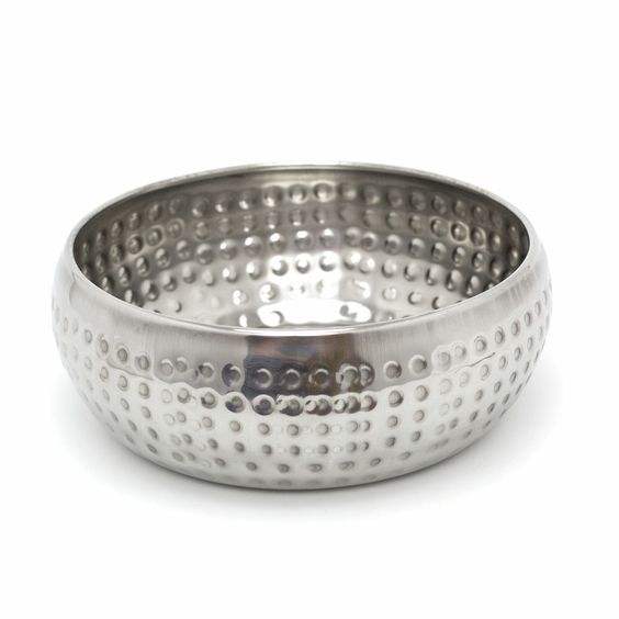 ชามสลัดโลหะทรงกลมทำจากอลูมิเนียมสีเงินสำหรับใช้ในห้องครัวและบนโต๊ะ