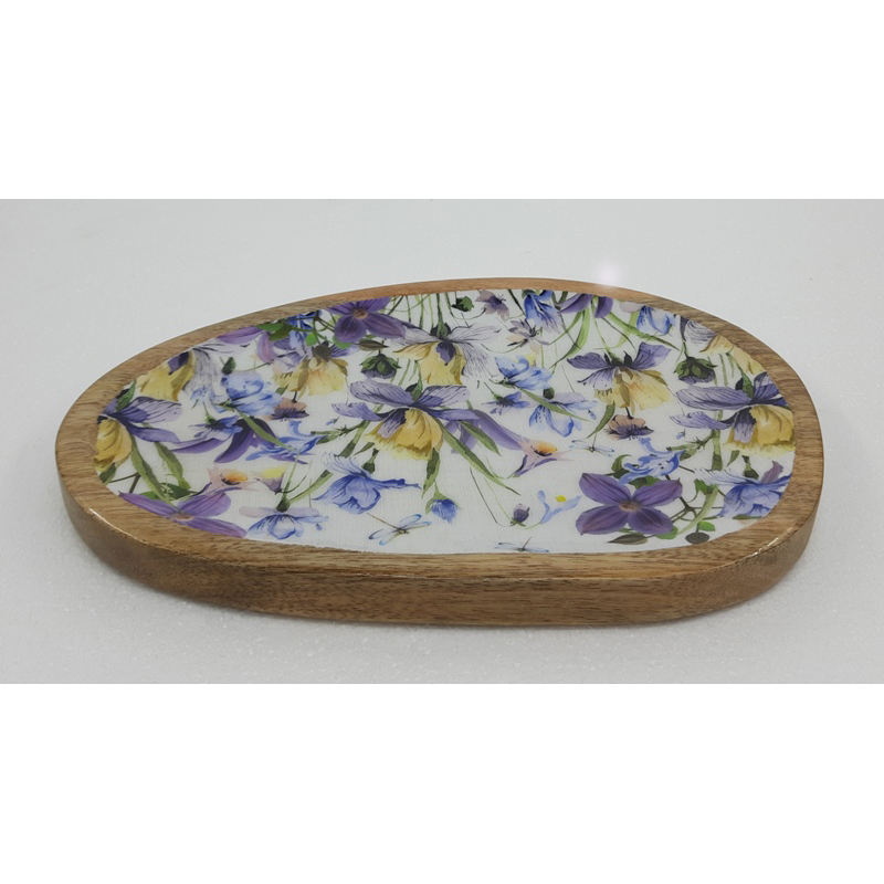 ถาดเสิร์ฟอาหารโลหะทรงรีพร้อมรูปลอกเคลือบสำเร็จสำหรับงานแต่งงานและโรงแรมถาดเสิร์ฟอาหารแบบแฮนด์เมดจำนวนมาก