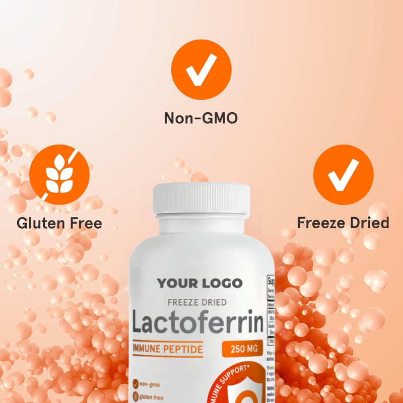 ขายดี ผลิตภัณฑ์ฉลากส่วนตัว ขายส่ง แคปซูลแลคโตเฟอร์รินจากวัว 98% เกรดอาหาร อาหารเสริมสุขภาพต่อมลูกหมาก บริสุทธิ์จากธรรมชาติ สำหรับผู้ใหญ่ มาตรฐาน GMP