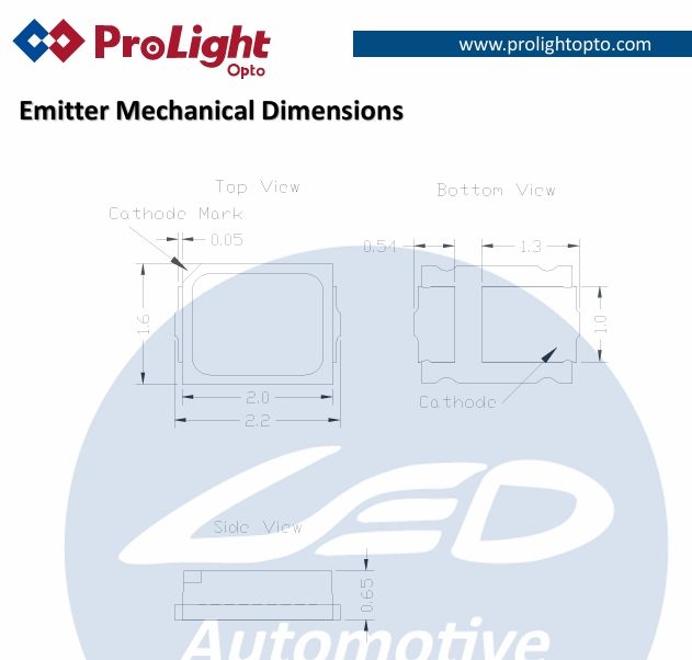 ชิป SMD LED พลังงานสูงสำหรับแบ็กไลท์ AV2N-WA1AF-1 2016ชิ้นสีเหลือง0.2วัตต์