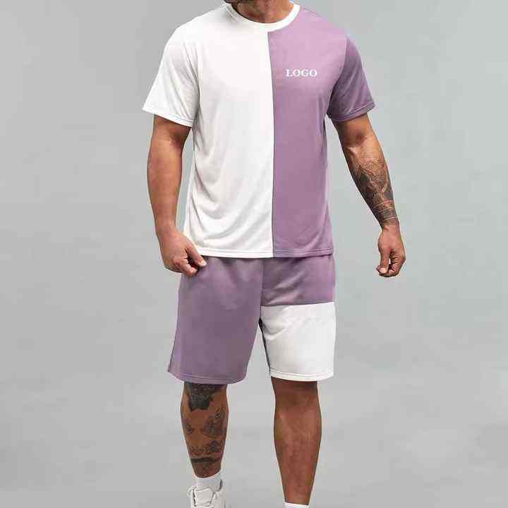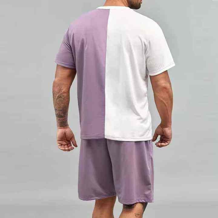 เสื้อยืดแขนสั้นและกางเกงขาสั้นชุดคู่แฝดสำหรับผู้ชายสีตัดกันมาใหม่ฤดูร้อน