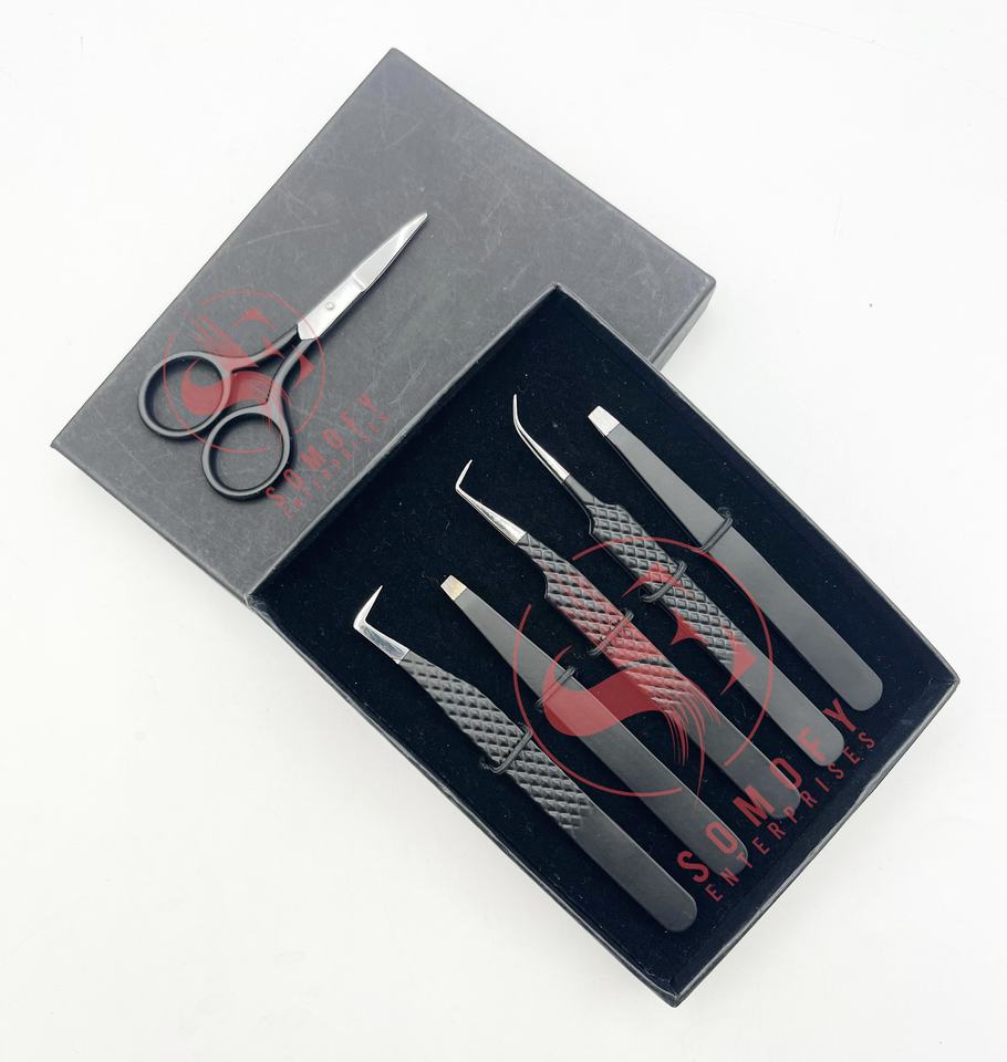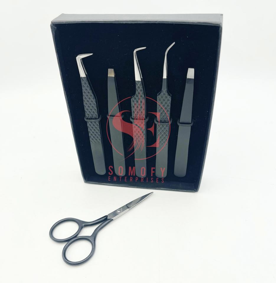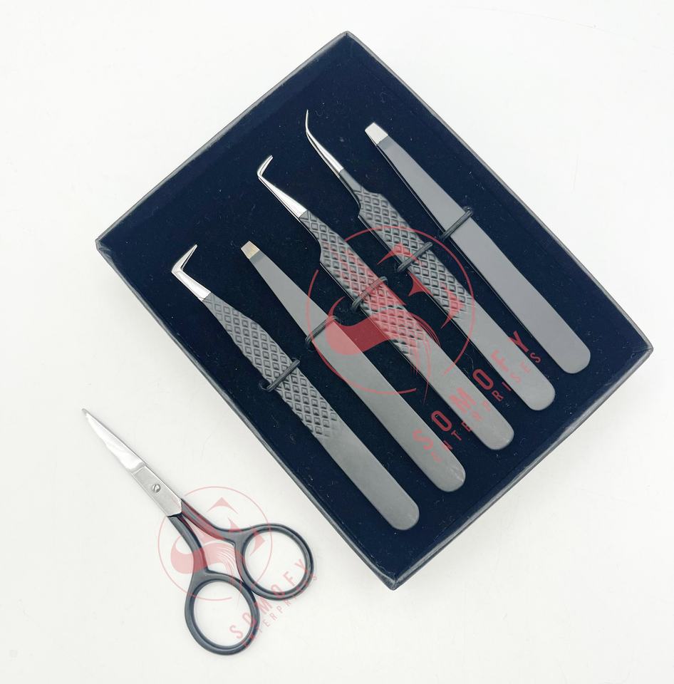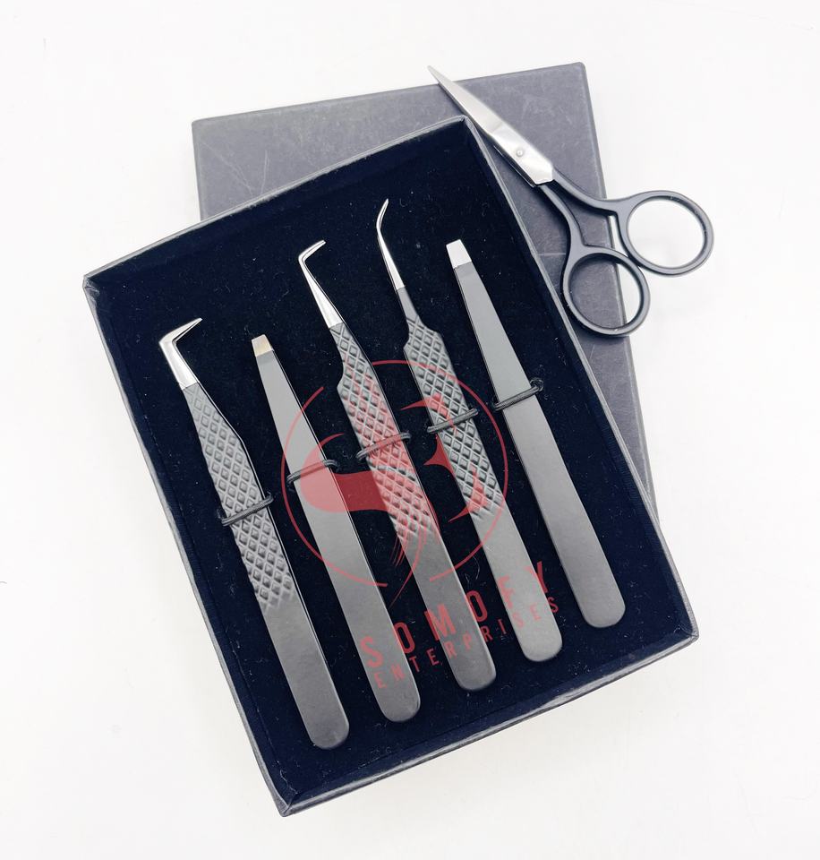 แหนบขนตาสแตนเลสแบบมืออาชีพอุปกรณ์จับคิ้ว/ขนตาแบบโลหะหนาสีดำกำหนดโลโก้ได้เอง