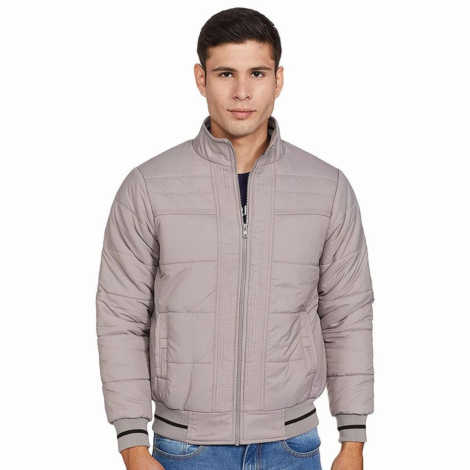 แจ็กเก็ตขนเป็ดแบบรูดซิปแขนยาวสำหรับผู้ชายเสื้อแจ็กเก็ตขนเป็ดแฟชั่นแบบเต็มแขนสีเทา