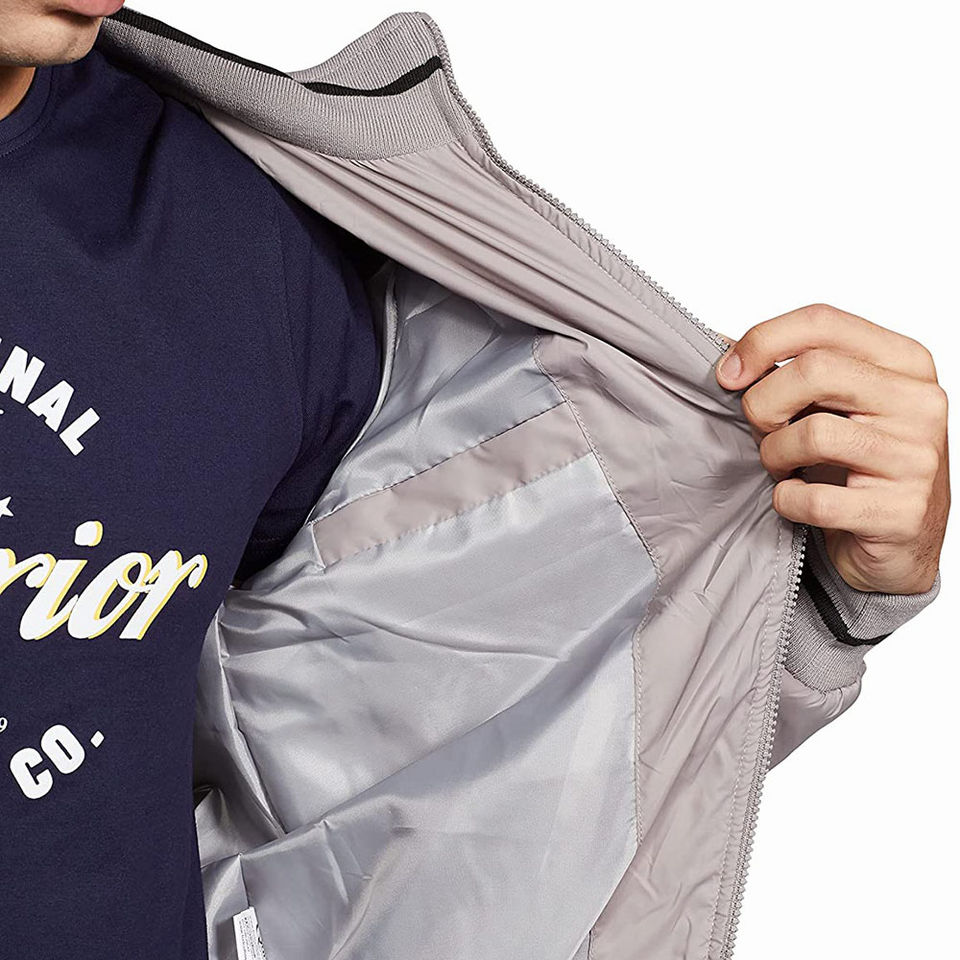 แจ็กเก็ตขนเป็ดแบบรูดซิปแขนยาวสำหรับผู้ชายเสื้อแจ็กเก็ตขนเป็ดแฟชั่นแบบเต็มแขนสีเทา