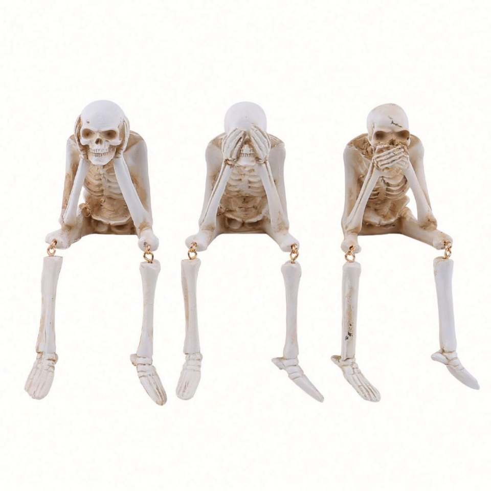 รูปปั้นโครงกระดูกเหมือนจริงลดกระหน่ำได้ยินแบบไม่มีสิ่งชั่วร้ายตกแต่งฮาโลวีนของขวัญคอลเลกชันสยองขวัญโพลีเรซิน