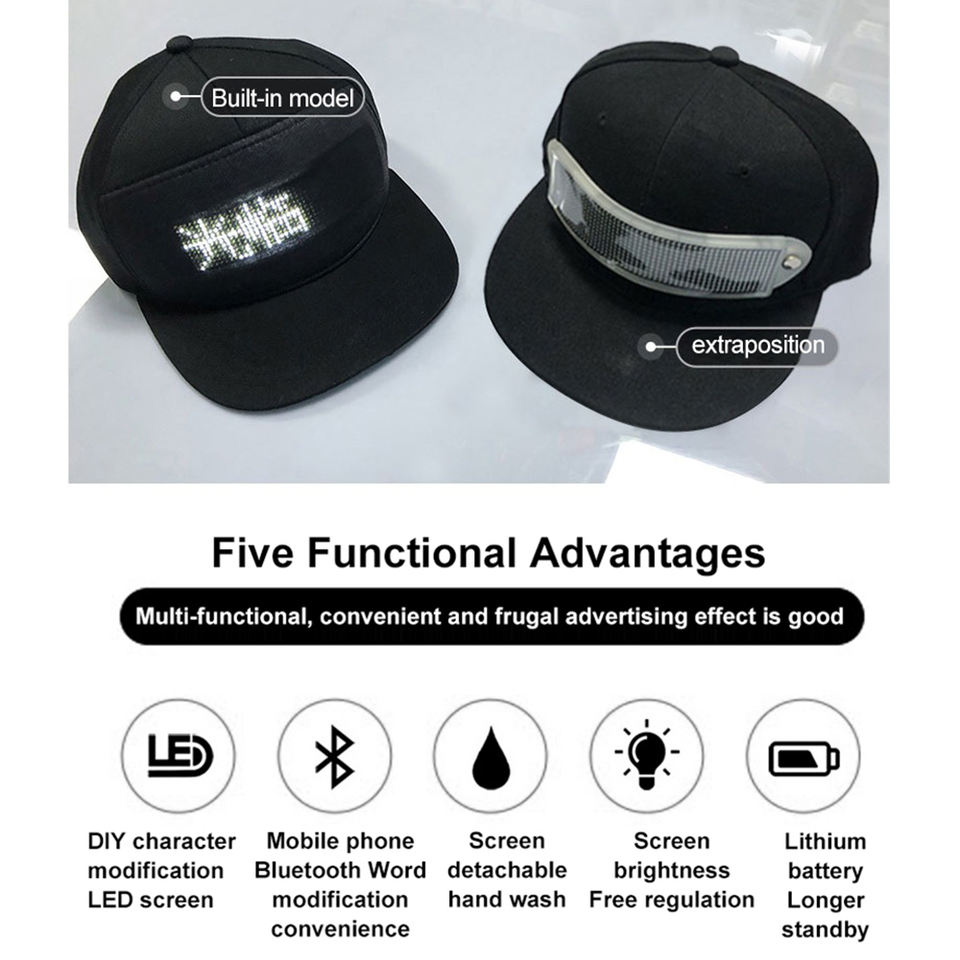 หมวกแอปแบบชาร์จไฟได้หมวกไฟ LED แสดงข้อความแบบดิจิทัลที่ตั้งโปรแกรมได้