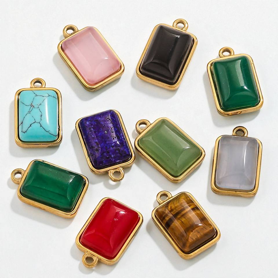 จี้พลอย Lapis ทรงสี่เหลี่ยมผืนผ้าเสน่ห์-เครื่องประดับจี้เงิน925