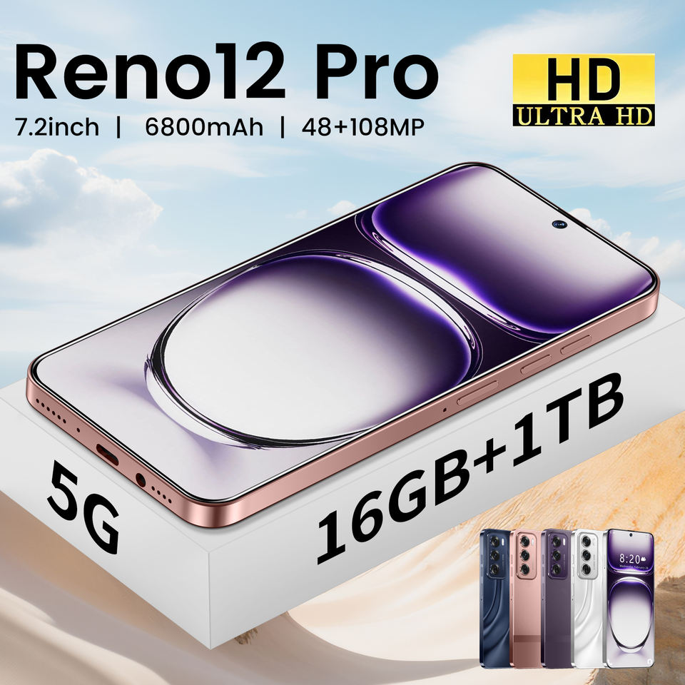 Hot Sale Reno 12 Pro 5G Smartphone 7.2inch HD Full Screen Global Version Mobile Phone Dual SIM 16GB+1TB Fast Charge