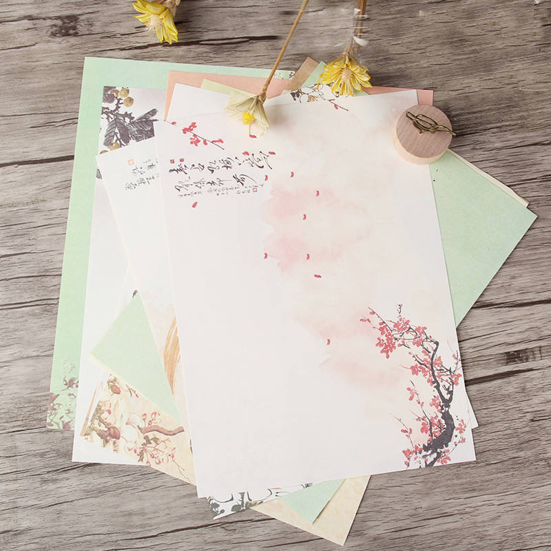 กระดาษเขียนจดหมาย8ฉบับย้อนยุคชุดเครื่องเขียนกระดาษสำหรับเขียนจดหมายเครื่องเขียนของขวัญคริสต์มาส