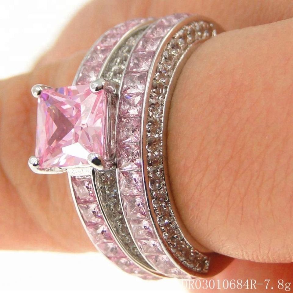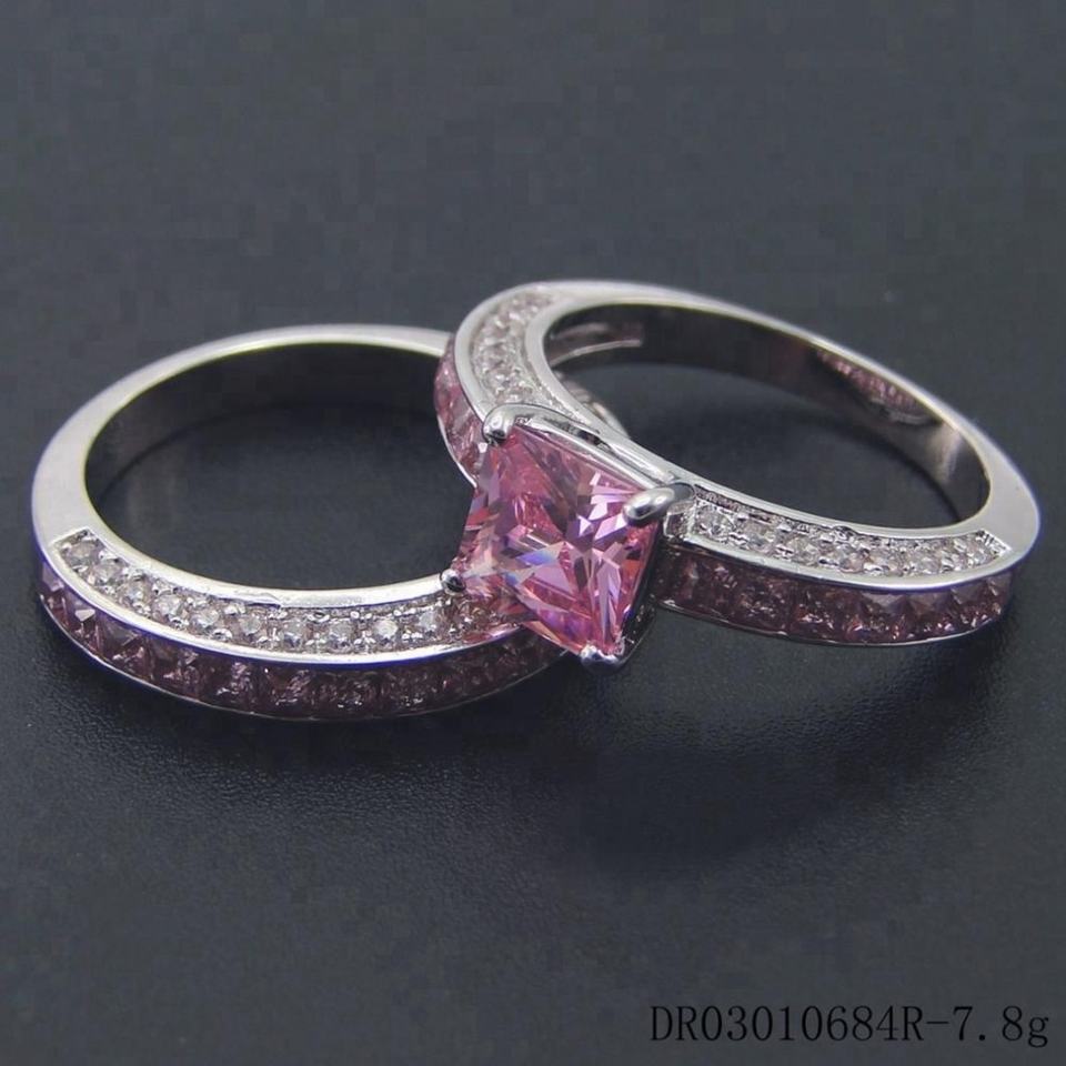ชุดเครื่องประดับเจ้าสาวเงินแท้ 925 ชุบโรเดียม ลดราคาพิเศษ ประดับเพชรซิคอเนียสีชมพู ของขวัญหมั้น งานปาร์ตี้ แหวนแต่งงาน