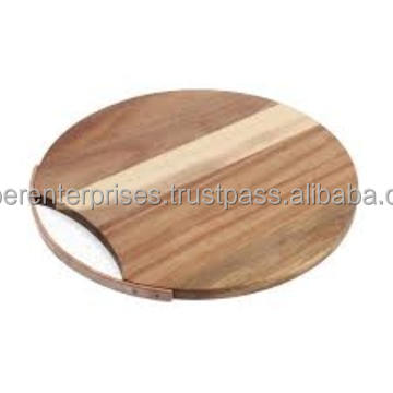 เขียงไม้อะคาเซียทรงกลมสำหรับหั่นเนื้อแบบมีที่จับและร่องใส่น้ำผลไม้สำหรับผักและผลไม้
