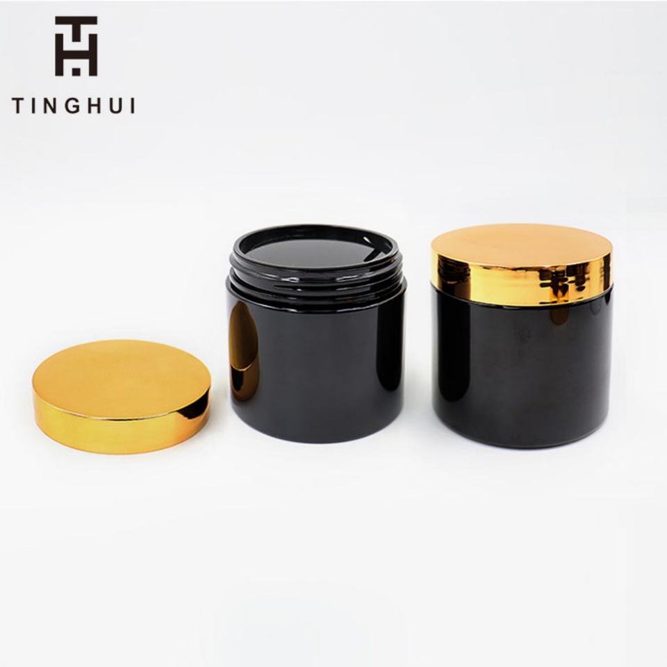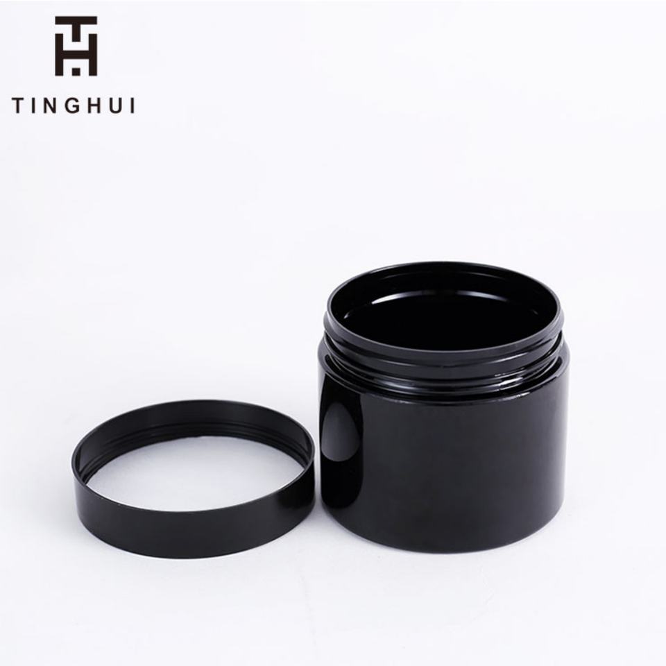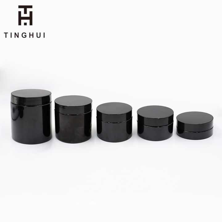 ขวดพลาสติกสีดำทรงกลมพร้อมฝาปิด PET สำหรับใส่เครื่องสำอางแบบพกพา ลดราคา