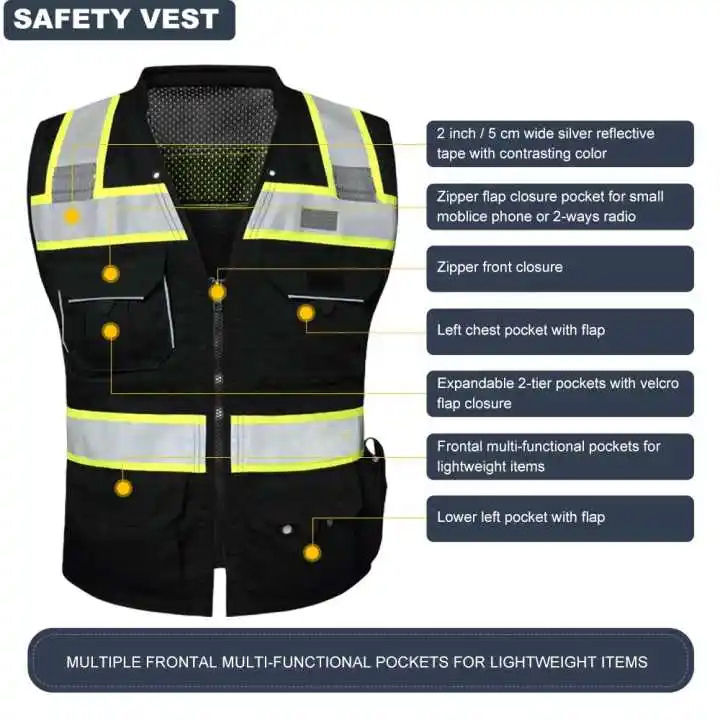 เสื้อกั๊กนิรภัยสะท้อนแสงสำหรับงานก่อสร้าง ความปลอดภัยสูง มองเห็นได้ชัดเจน สำหรับผู้ชาย ลดราคาพิเศษ