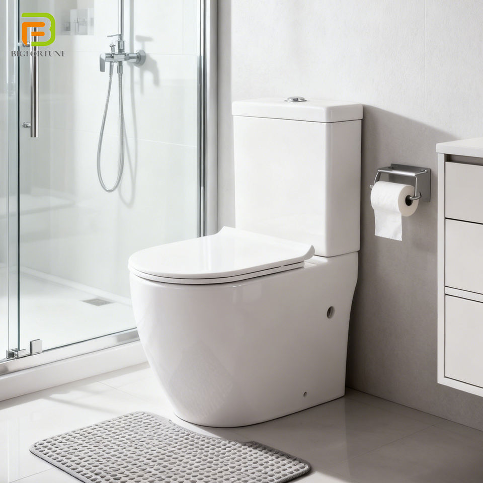 สุขภัณฑ์ลดราคา โถสุขภัณฑ์แบบตั้งพื้น ระบบชำระล้างสองระบบ โถสุขภัณฑ์ทรงกลม สำหรับห้องน้ำ โรงแรม เซรามิกไร้ขอบ แบบสองชิ้น