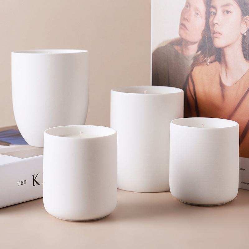 Hot Sale Scented Candle Holder Handmade Solid White Matte Ceramic Soy Wax Scented Candle Jar