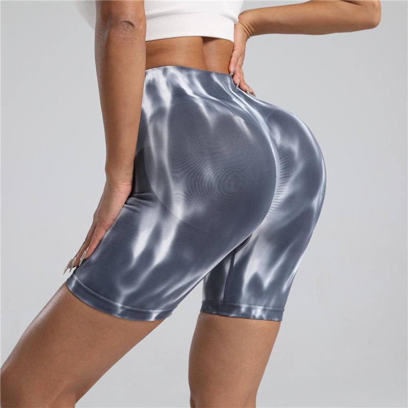 กางเกงขาสั้นนักขี่จักรยานโยคะสำหรับผู้หญิงกางเกงรัดเอวสูงยกสะโพกไล่ระดับสีแบบสี่ทาง
