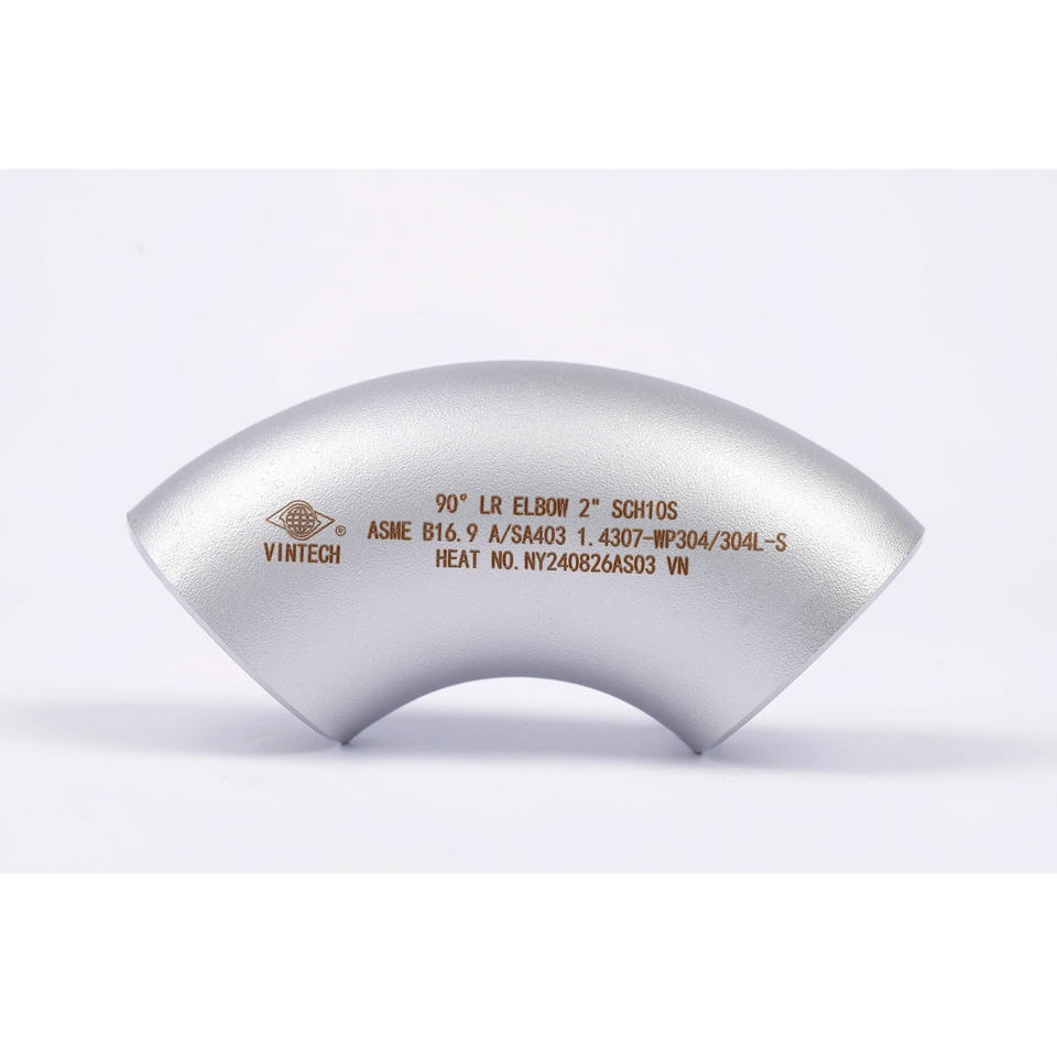 ข้อต่อเหล็กกล้าไร้สนิมเชื่อมแบบไร้รอยต่อ ลดราคาพิเศษ ข้อศอกโค้งงอ 90 องศา รัศมียาว หัวกลม มาตรฐาน ASME B16 9 A SA403