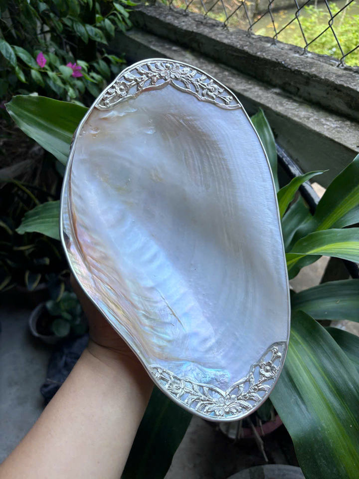 จานเปลือกหอยมุกขัดเงา ขนาด 22 ซม. งานฝีมือสุดหรู ของขวัญสุดพิเศษ ขายส่ง ราคาพิเศษ