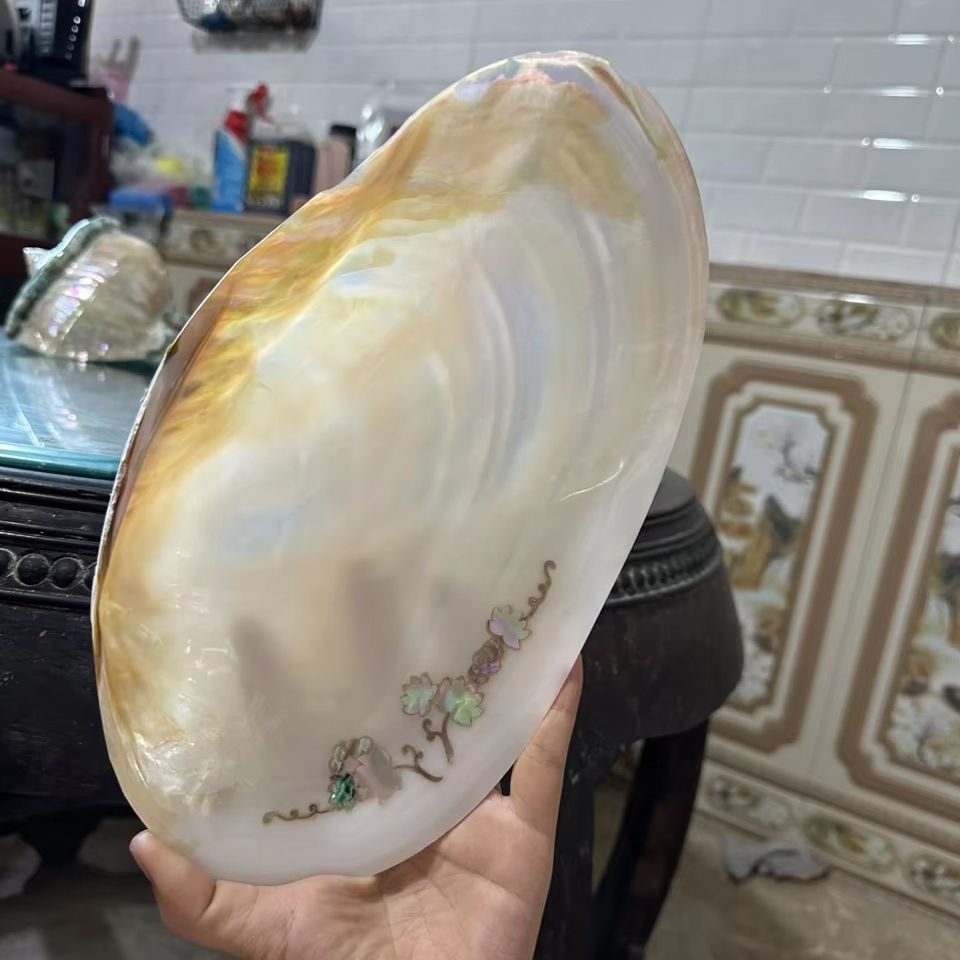 ถาดเปลือกหอยมุกธรรมชาติขนาด 22 ซม. ขัดเงาอย่างดี จานใส่ไข่ปลาคาเวียร์ งานฝีมือสุดหรู ของขวัญสุดพิเศษ ขายส่ง ราคาพิเศษ