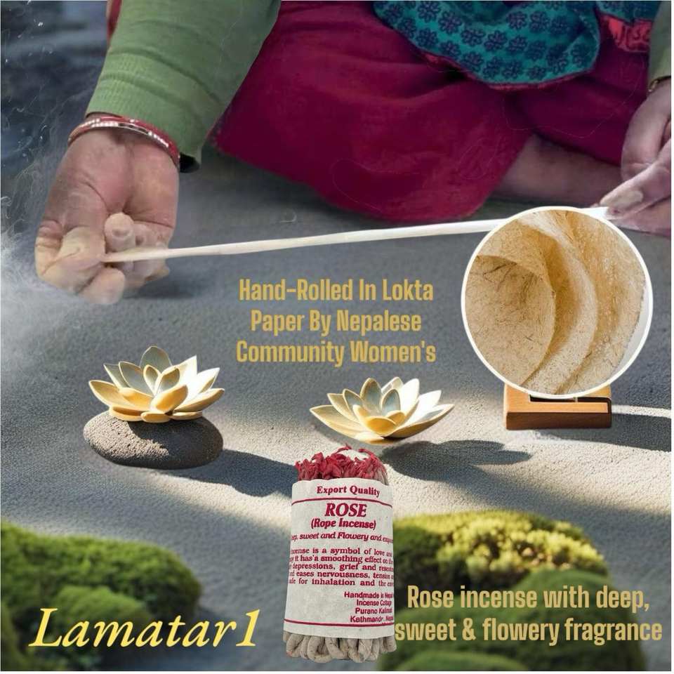 ชุดธูปเชือกกุหลาบทิเบตทำด้วยมือ2ชิ้นลายดอกไม้และกลิ่นหอมสวยงามเผาไหม้เบาๆด้วยกระดาษ lokta